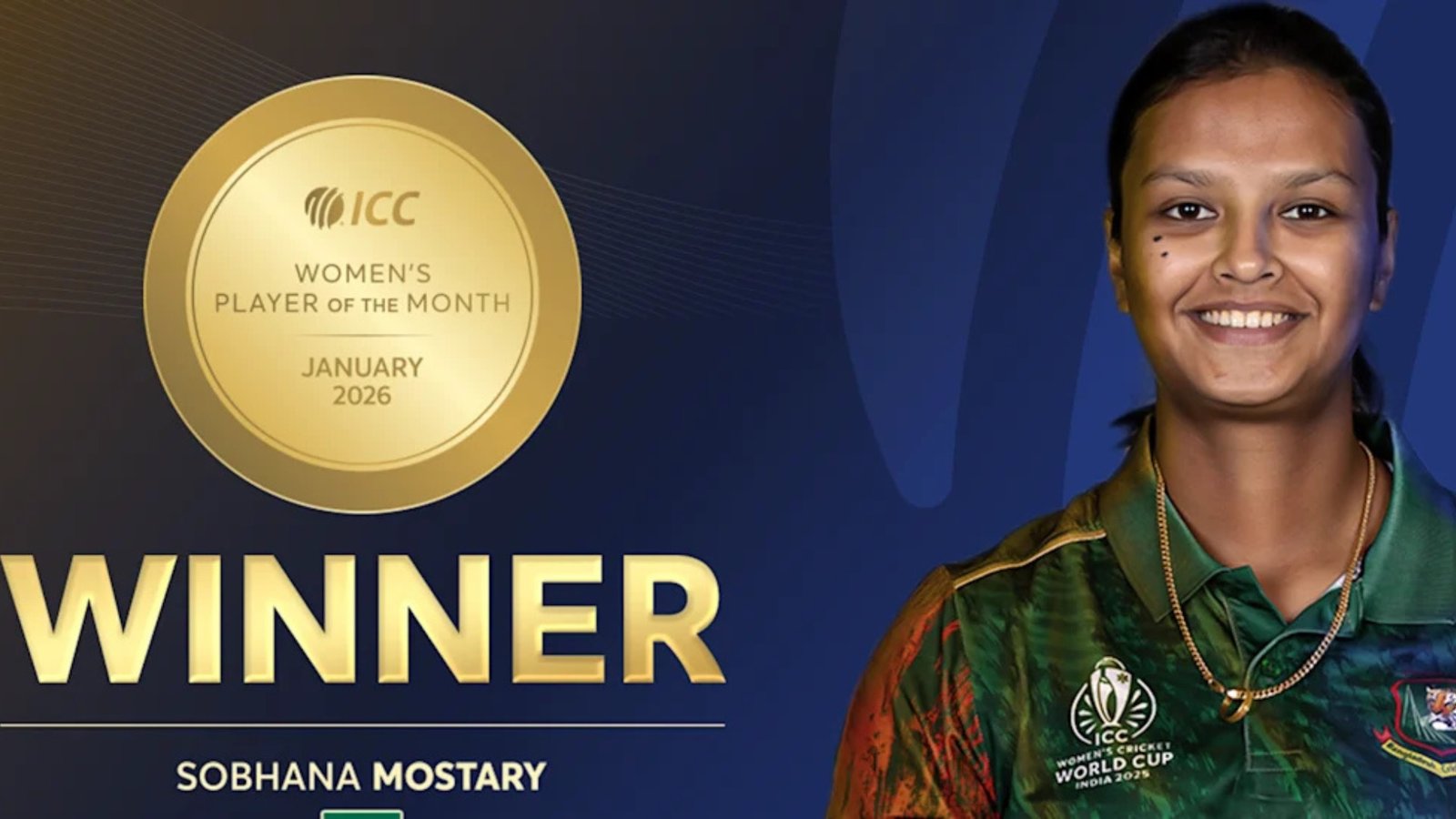 আইসিসি নারী টি-টুয়েন্টি বিশ্বকাপের কোয়ালিফায়ারে দারুণ পারফরম্যান্স করেছেন সোবহানা মোস্তানা। এবার তার স্বীকৃতি পেলেন টাইগ্রেস ক্রিকেটার। ২০২৬ সালের জানুয়ারি মাসে আইসিসির মাসসেরা নারী খেলোয়াড় হয়েছেন বাংলাদেশ তারকা।