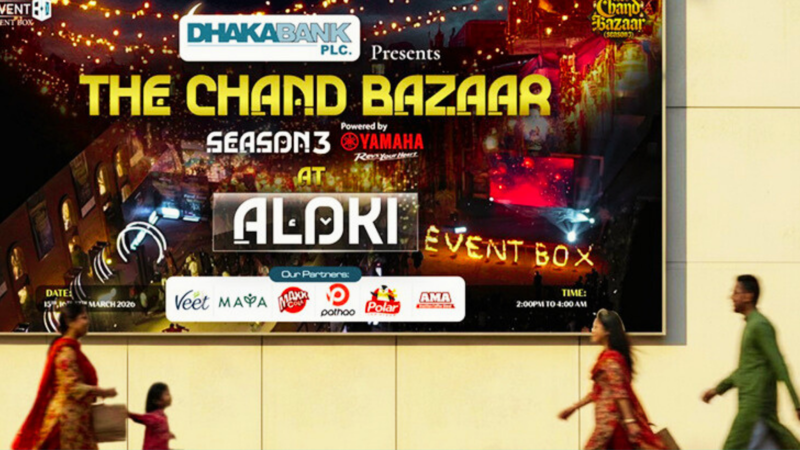 রাজধানীতে ঈদকে সামনে রেখে আবারও আয়োজন করা হচ্ছে জনপ্রিয় লাইফস্টাইল ফেয়ার ‘ঢাকা ব্যাংক প্রেজেন্টস দ্য চাঁদ বাজার সিজন ৩’। তিনদিনব্যাপী এই বিশেষ ঈদ বাজার ১৫, ১৬ ও ১৭ মার্চ রাজধানীর আলোকিতে অনুষ্ঠিত হবে। প্রতিদিন দুপুর ২টা থেকে ভোর ৪টা পর্যন্ত দর্শনার্থীদের জন্য বাজার খোলা থাকবে।