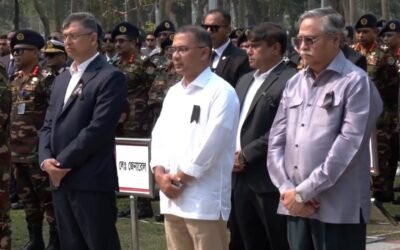 পিলখানা ট্র্যাজেডিতে শহিদ সেনা কর্মকর্তাদের প্রতি শ্রদ্ধা নিবেদন করেছেন রাষ্ট্রপতি মো. সাহাবুদ্দিন ও প্রধানমন্ত্রী তারেক রহমান। রোববার সকালে ‘শহিদ সেনা দিবস’ উপলক্ষে বনানী সামরিক কবরস্থানে শ্রদ্ধা নিবেদন করেন তারা। এ সময় স্বরাষ্ট্রমন্ত্রী সালাহউদ্দিন আহমদ, সেনা, নৌ ও বিমান বাহিনীর প্রধানগণ, স্বরাষ্ট্র মন্ত্রণালয়ের জননিরাপত্তা বিভাগের সিনিয়র সচিব, বর্ডার গার্ড বাংলাদেশের মহাপরিচালক এবং শহিদ পরিবারের সদস্যগণ উপস্থিত…