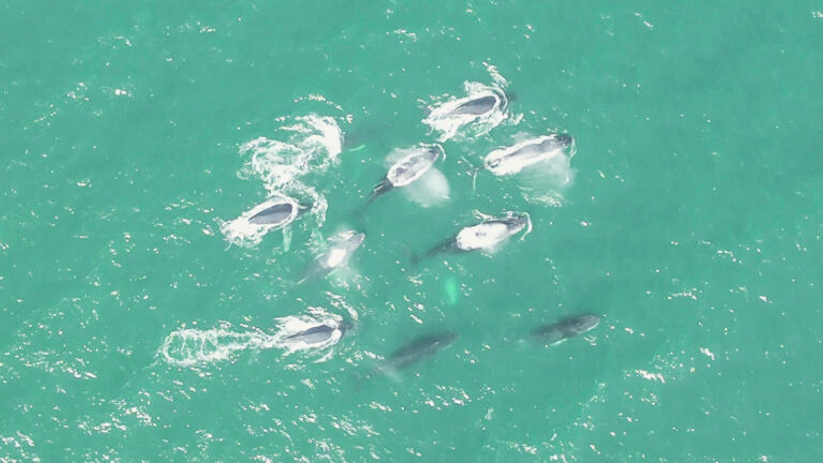 Drone operator Alex McNaught was alerted by veteran whale spotter Leigh Mansfield on Monday before launching his drone from Rocky Beach and later Tacking Point. His footage showed the large pod moving south at speed in a strikingly close formation.
