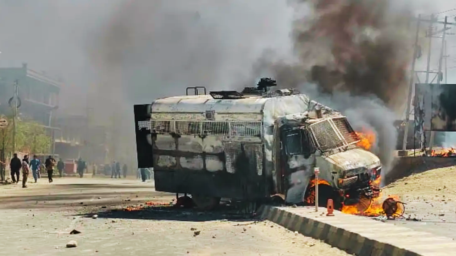 Eyewitnesses reported that angry protesters set fire to police vehicles and a local political office while hurling stones at security personnel. In response, police fired tear gas, used batons and eventually opened fire to regain control of the situation.