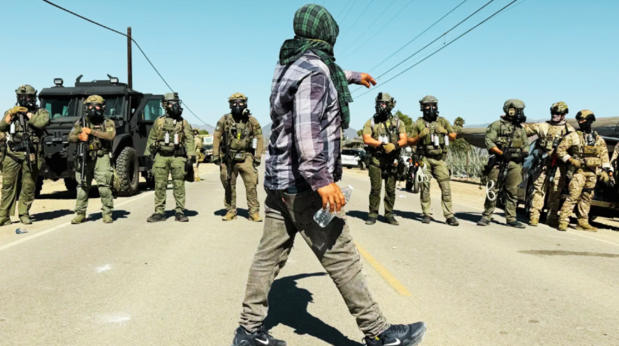 The raid drew a large crowd of community members outside Glass House Farms in Camarillo, where people gathered to find out about their loved ones and protest the enforcement action. Authorities, dressed in military-style helmets and uniforms, faced off with demonstrators, while thick green and white smoke billowed into the air, forcing many to retreat.