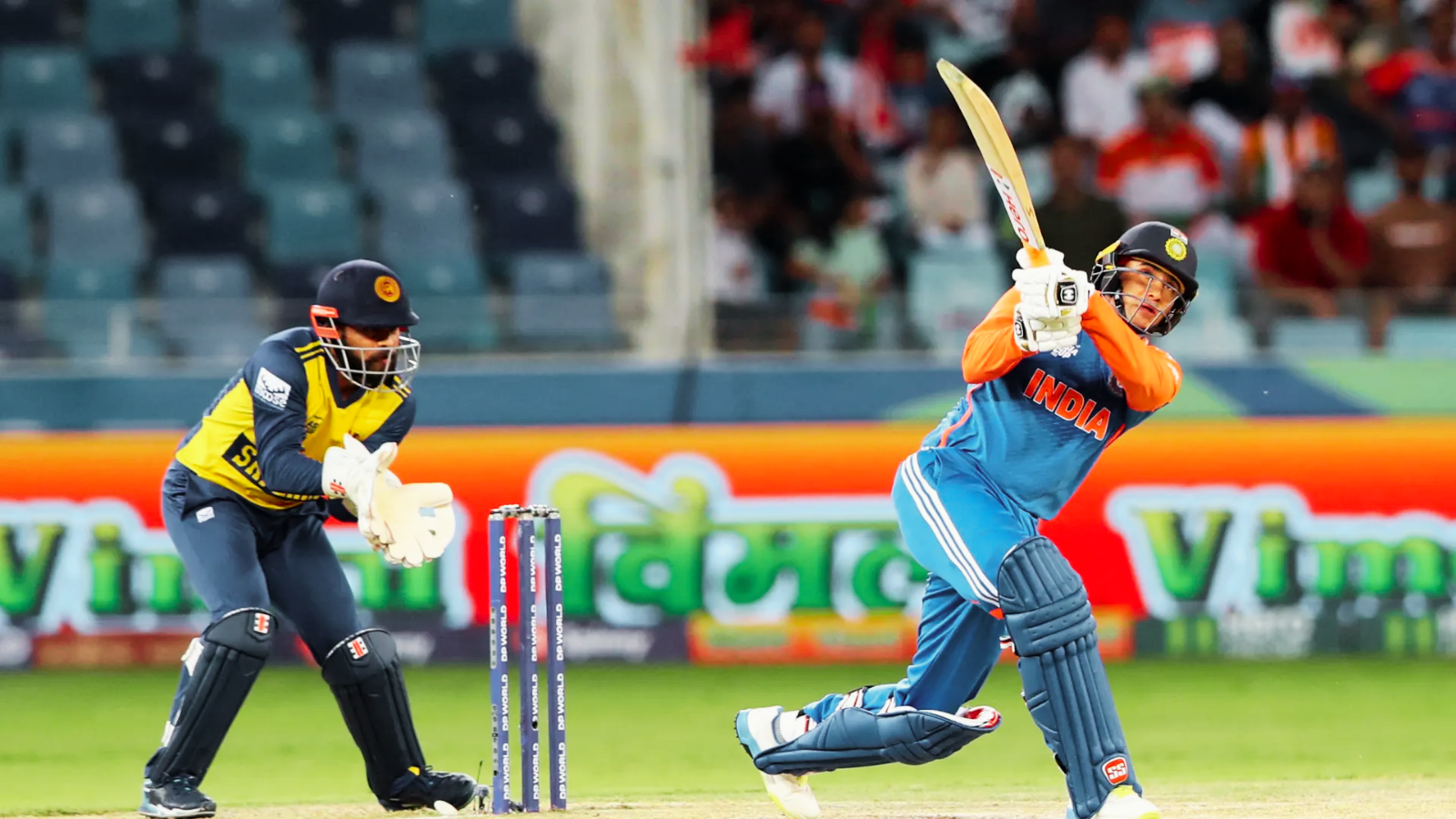 India lost Shubman Gill early for 4, caught and bowled by Maheesh Theekshana in the second over. Captain Suryakumar Yadav added 12 off 13 before falling, but not before sharing a brisk 59-run stand with Abhishek Sharma. The powerplay proved explosive, yielding 71 runs.