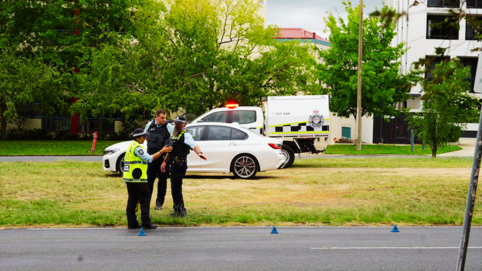 On his route, Hazell struck another car outside a Queanbeyan school, damaged a pedestrian crossing safety barrier, drove straight over a roundabout, and mounted median strips to bypass traffic. Near St Edmund’s College, in heavy congestion, he attempted to overtake by driving along the median strip hitting another car and the two boys waiting to cross the road.